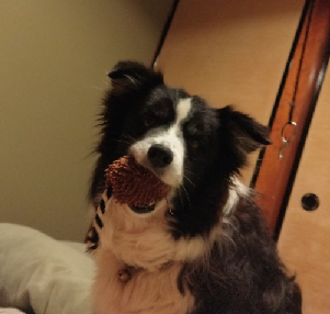 ウキウキ顔で咥えた