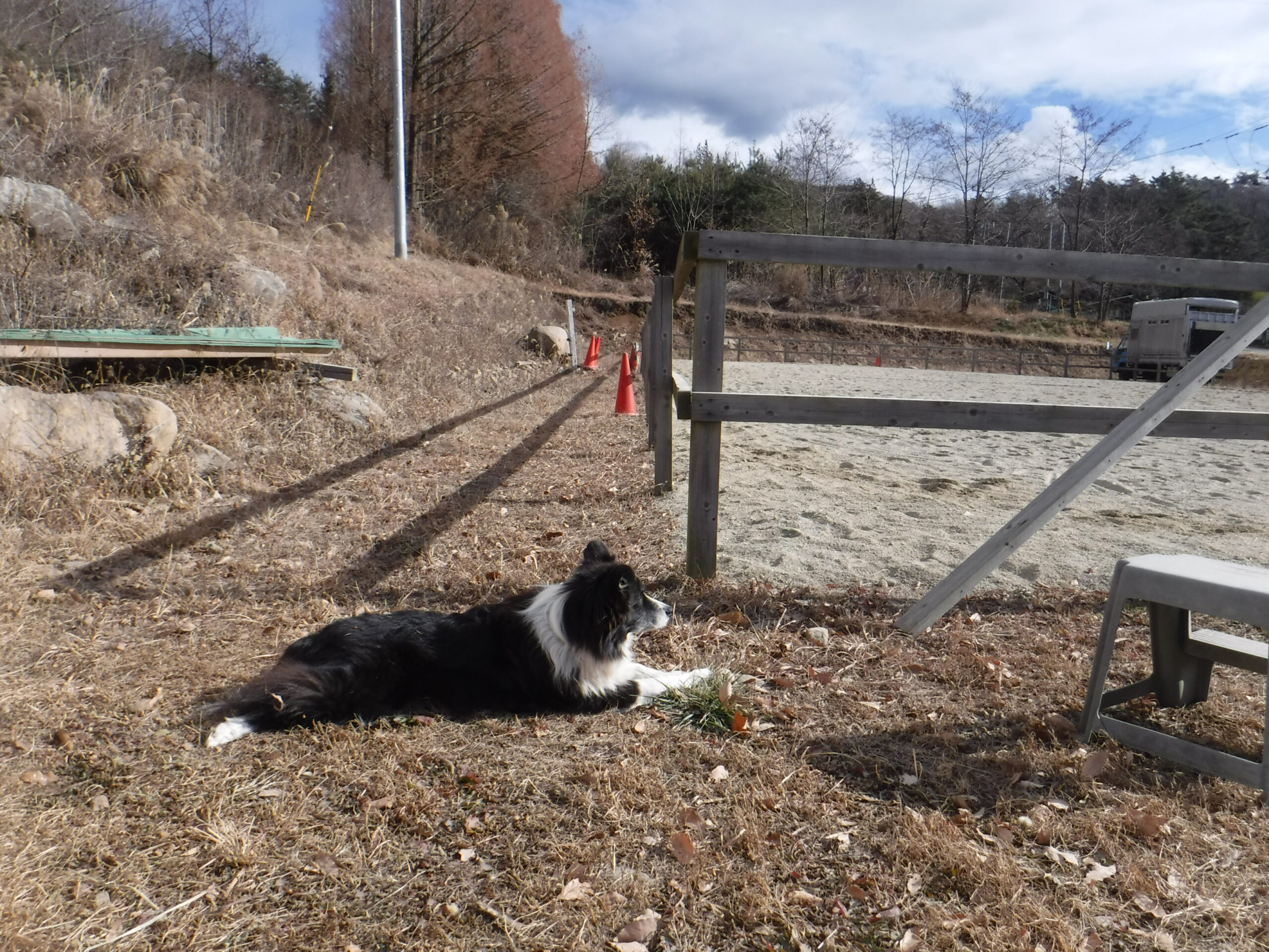 乗馬中のお客様を見守りつつ。