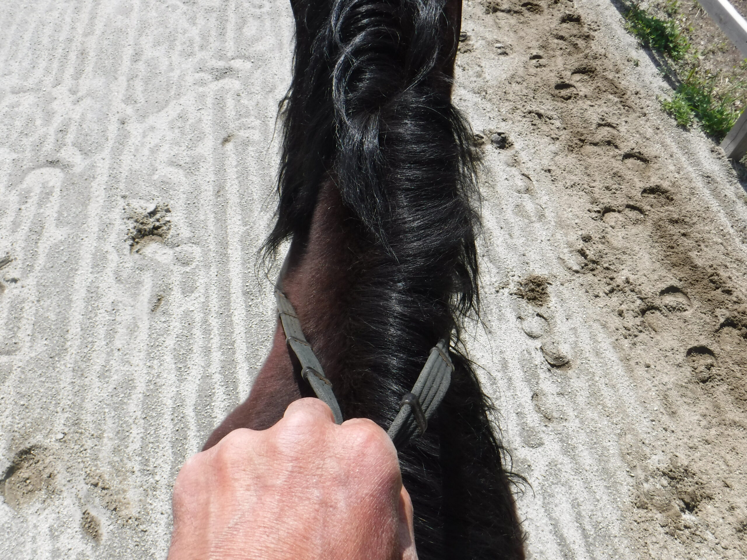 シングルハンドでのレーン(手綱)の持ち方。