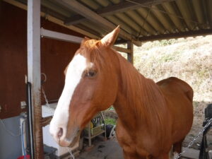 ・肩で押してくる(馬房とか繋ぎ場で首を擦り付けてくるのも含め…これ、別の機会に詳細を)