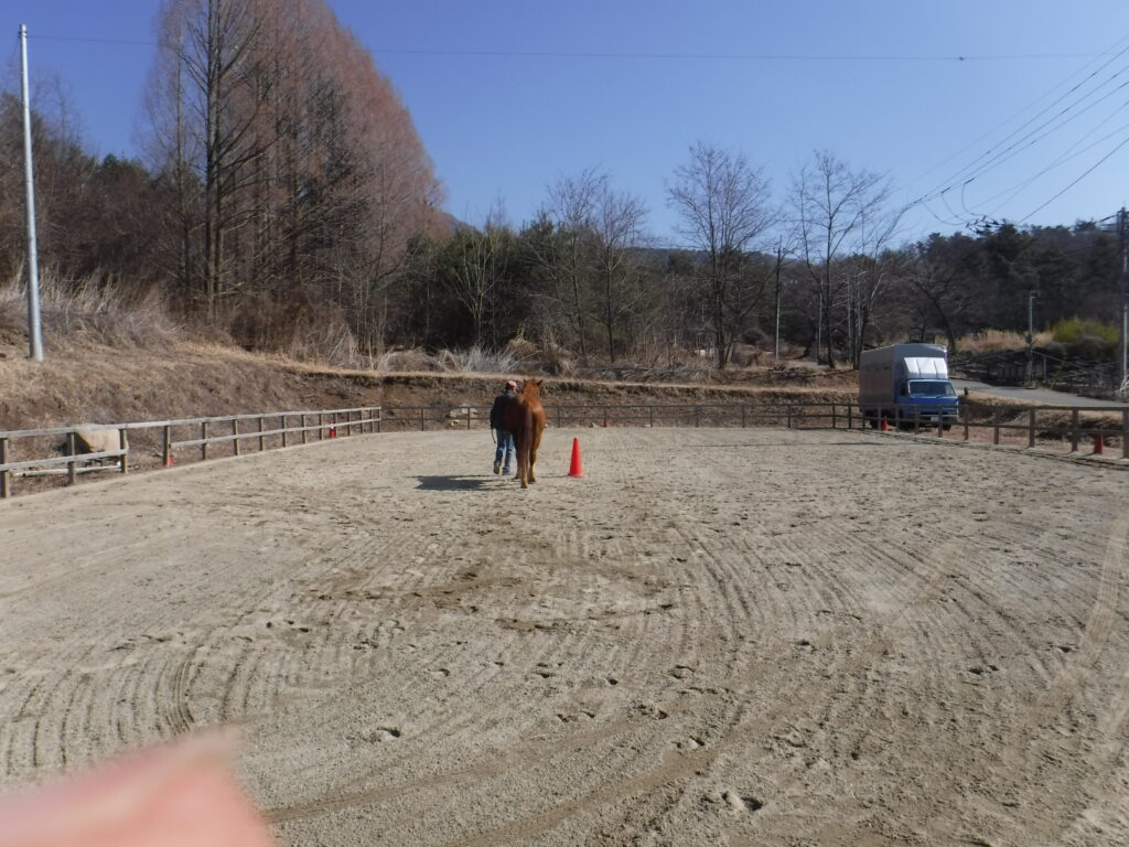 馬は反応しているはずなんですよ、よくあるパターンは前に進まない、ビタ止まりする。