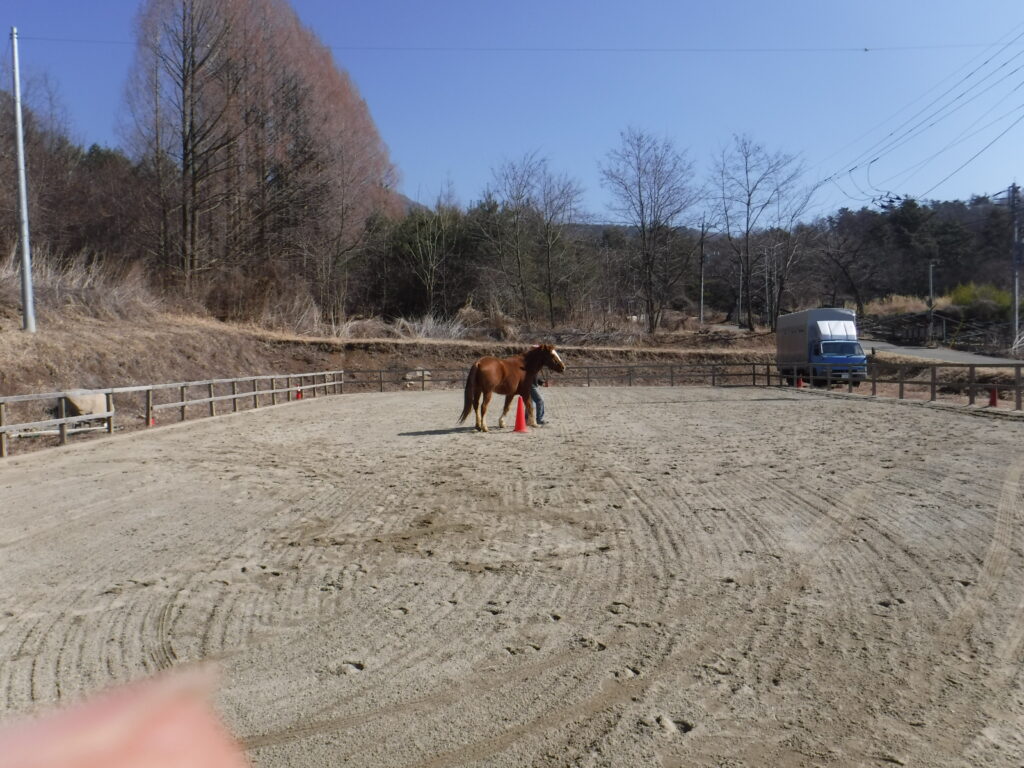 カラーコーンの数十メートル先にあるブルーシートに対して馬が拒否反応を示しているなら、