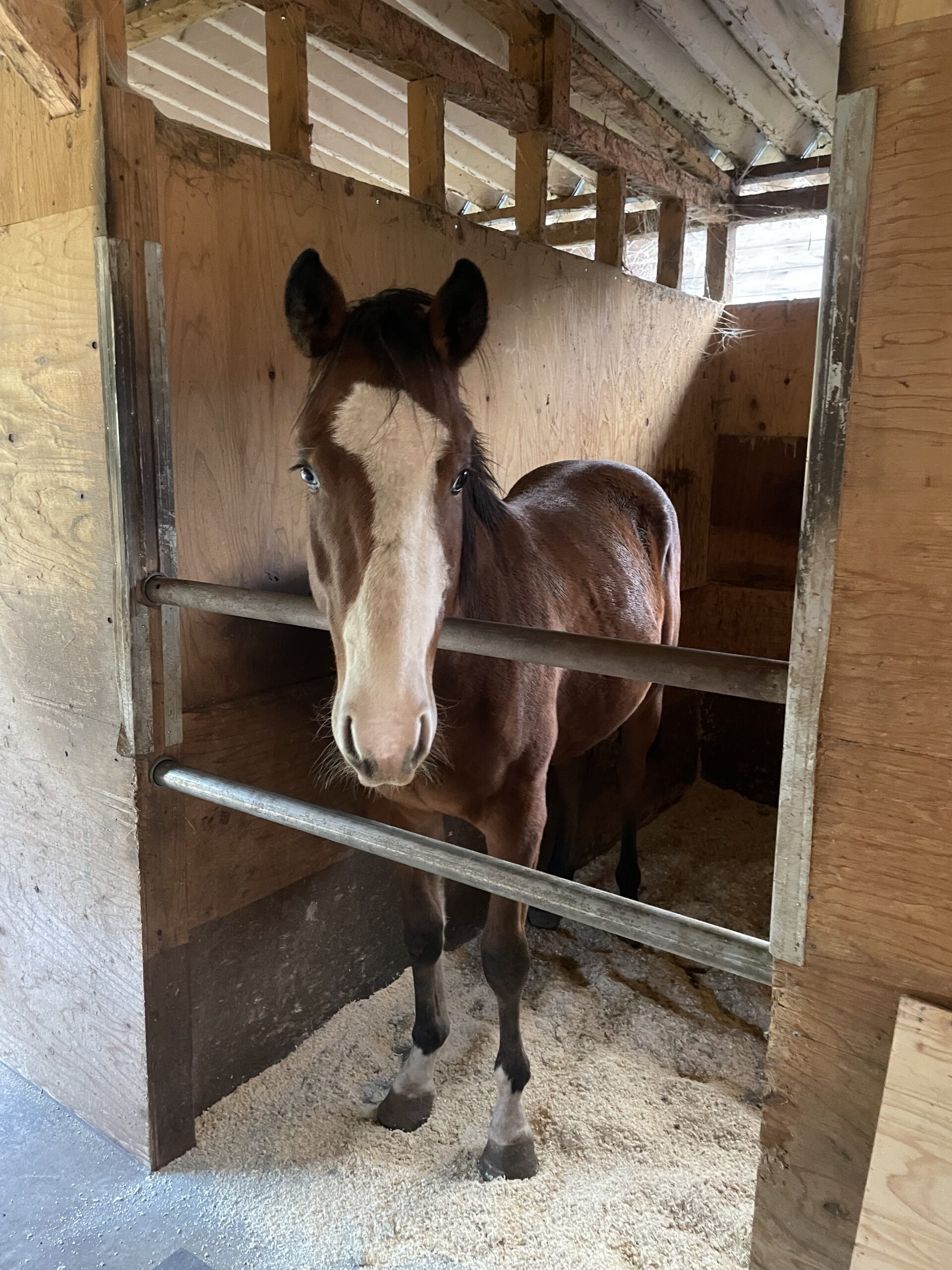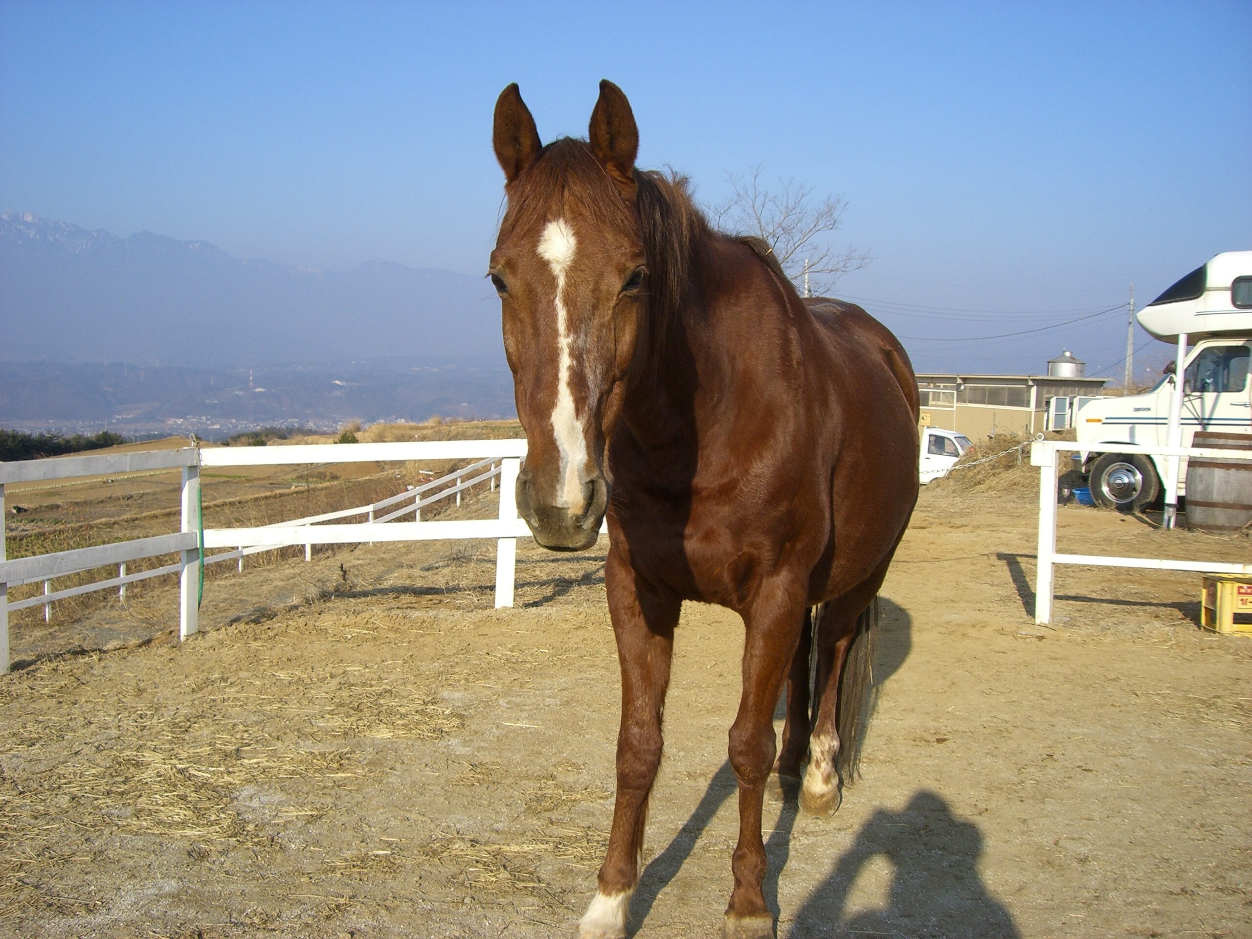 2018年に3歳で北海道から牛と混載で来た芦毛の牝馬です。9歳になって、芦毛らしく白くなってきたけど、性格はまだまだ気まぐれなとこがあります。